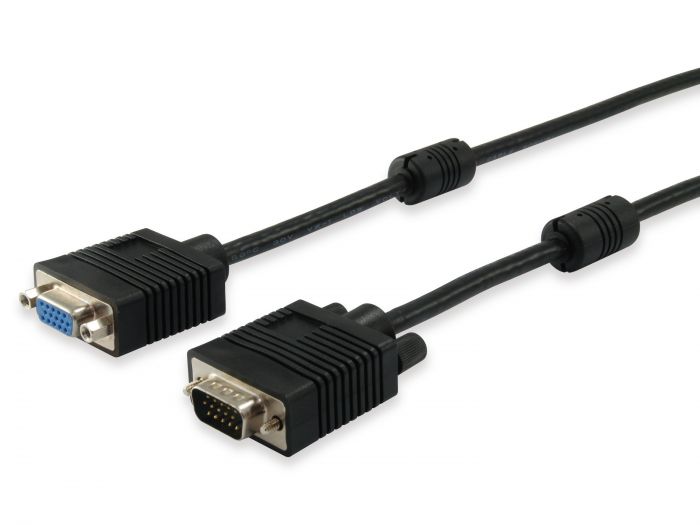 Das Equip VGA-Kabel ist mit robusten Rändelschrauben und Ferritperlen ausgestattet, um eine zuverlässige Verbindung zwischen den Monitoren oder Projektoren und den VGA-fähigen Geräten zu gewährleisten.