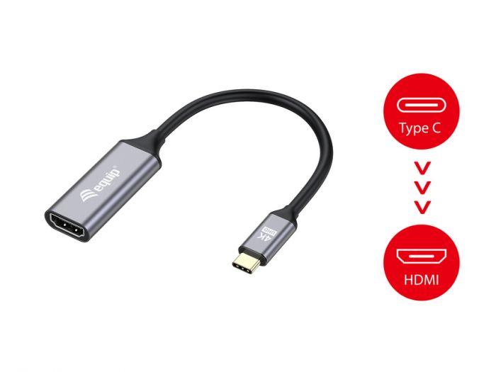Der Equip USB-C zum HDMI Adapter bietet eine reibungslose und mühelose Erfahrung für den Anschluss Ihres USB-C Fähigen Gerät auf Ihrem HDTV, 4K / Ultra HDTV oder einem anderen HDMI-fähigen Display. Dieser Adapter unterstützt 4K@60Hz, bietet atemberaubende Klarheit und Sound für die ultimative Seherlebnis