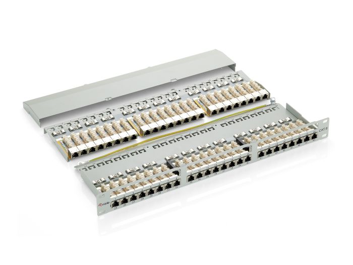 48-Port Cat.6 Geschirmtes Patch Panel, Hellgrau