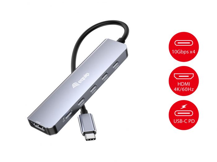 The Equip 133499 USB-C 6-in-1 Multifunctional Adapter is designed to expand the connectivity options of modern laptops, tablets, and smartphones equipped with USB-C ports. With its compact and lightweight form factor, this versatile adapter combines multiple essential interfaces into one reliable solution, making it perfect for both professional and personal use.