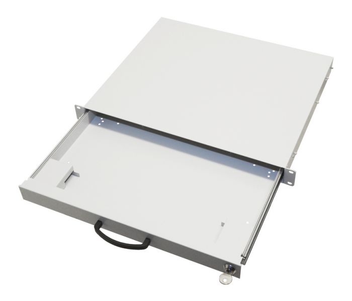 260410 Empty 19" Keyboard/Mouse Drawer telescopic and lockable, 1U, light grey RAL7035