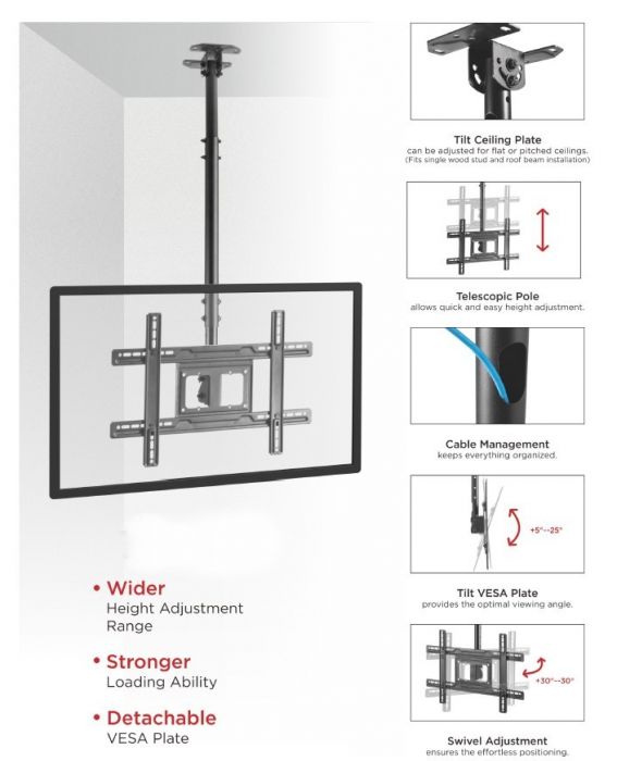 The equip® TV Wall Mount Bracket is a compact but sturdy product that ensures a reliable installation of your LCD/Plasma TV. Follow the graphic guide included in the package, you can install your TV on your own with ease. The wall bracket fits most of the wall materials- brick, concrete and wood, making the ideal choice for you to set up your screens