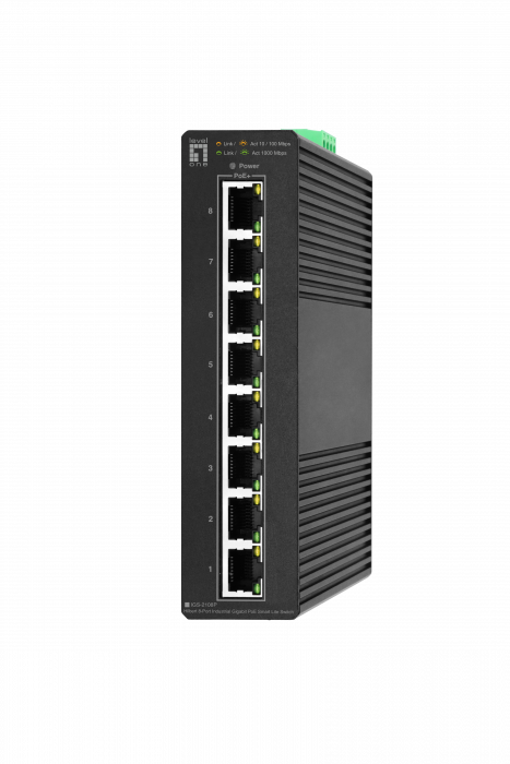 The LevelOne IGS-2108P Hilbert 8-Port Industrial Gigabit PoE Smart Lite switch is a next-generation Ethernet Switch offering powerful better PoE functionality and usability that delivers the cost-effectively business and transports Ethernet services via copper connections. the IGS-2108P offers 8 (10M/100M/1G) RJ45, of which 8 are PoE+ (support 802.3at/af) ports to enable high speed network at mission-critical environment. With the industrial standard DIN-rail mount, plus the clearly visible status LEDs provide simple monitoring of port link activity.. can be matched with the latest LevelOne IP Locator, the software is the easiest to use switch discovery tool, it can search all Hilbert series switches, instantly know the forgotten IP and other info. Compatible with mainstream Windows and Mac operating systems.