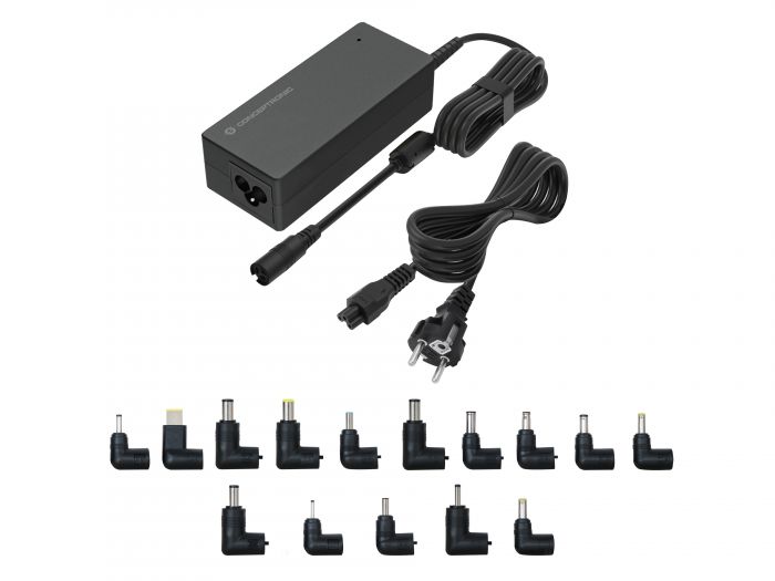 The Conceptronic laptop adapter offers a safe, reliable, and convenient secondary power solution for use at home, in the office, or on the go. It also serves as an ideal replacement for lost or damaged adapters. The package includes 10 interchangeable tips, compatible with all major laptop brands and models. Built-in protection against overload, short circuits, and overheating ensures safe and stable performance.