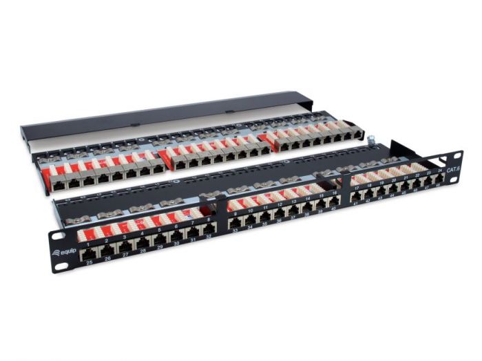 El Patch Panel equip® es una unidad de distribución de red de 19" 1U que integra un sistema de gestión de cables para una mejor gestión del cableado y requisitos de alivio de tensión, adecuado tanto para los estándares LSA como 110. Con 48 puertos RJ45 apantallados, este patch panel se recomienda para conectar con latiguillos apantallados equip® y accesorios de cableado para lograr un rendimiento excepcional. Además, cada puerto está marcado con un número de puerto para su reconocimiento.